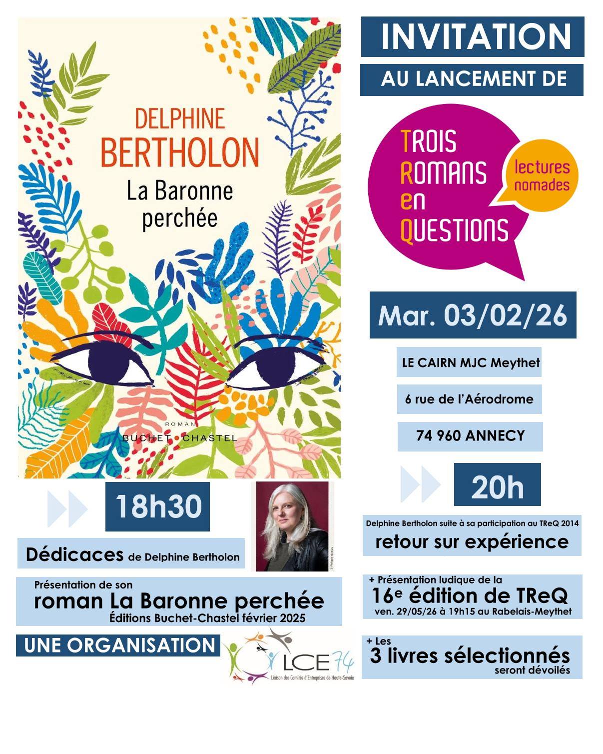 En compagnie de l’auteure Delphine Bertholon qui a participé à TreQ en 2014, qui partagera son expérience et présentera son nouveau livre « La Baronne perchée »